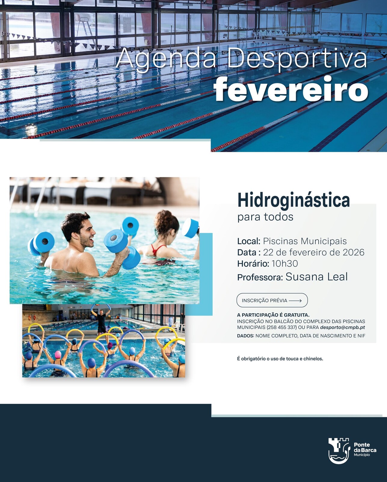 O Município de Ponte da Barca promove, no próximo dia 22 de fevereiro, uma aula de hidroginástica livre, aberta ao público em geral.
