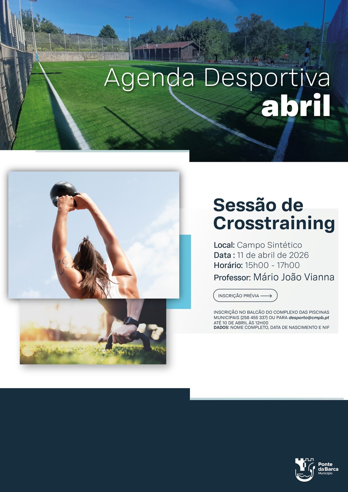 No próximo dia 11 de abril, o Campo Sintético da praia fluvial de Ponte da Barca recebe uma sessão de crosstraining, integrada na agenda desportiva da Câmara Municipal, no âmbito da sua estratégia de promoção da atividade física e de estilos de vida saudáveis junto da população.