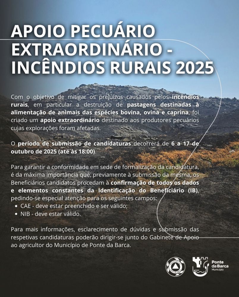 - Apoio Pecuário Extraordinário - Incêndios Rurais 2025