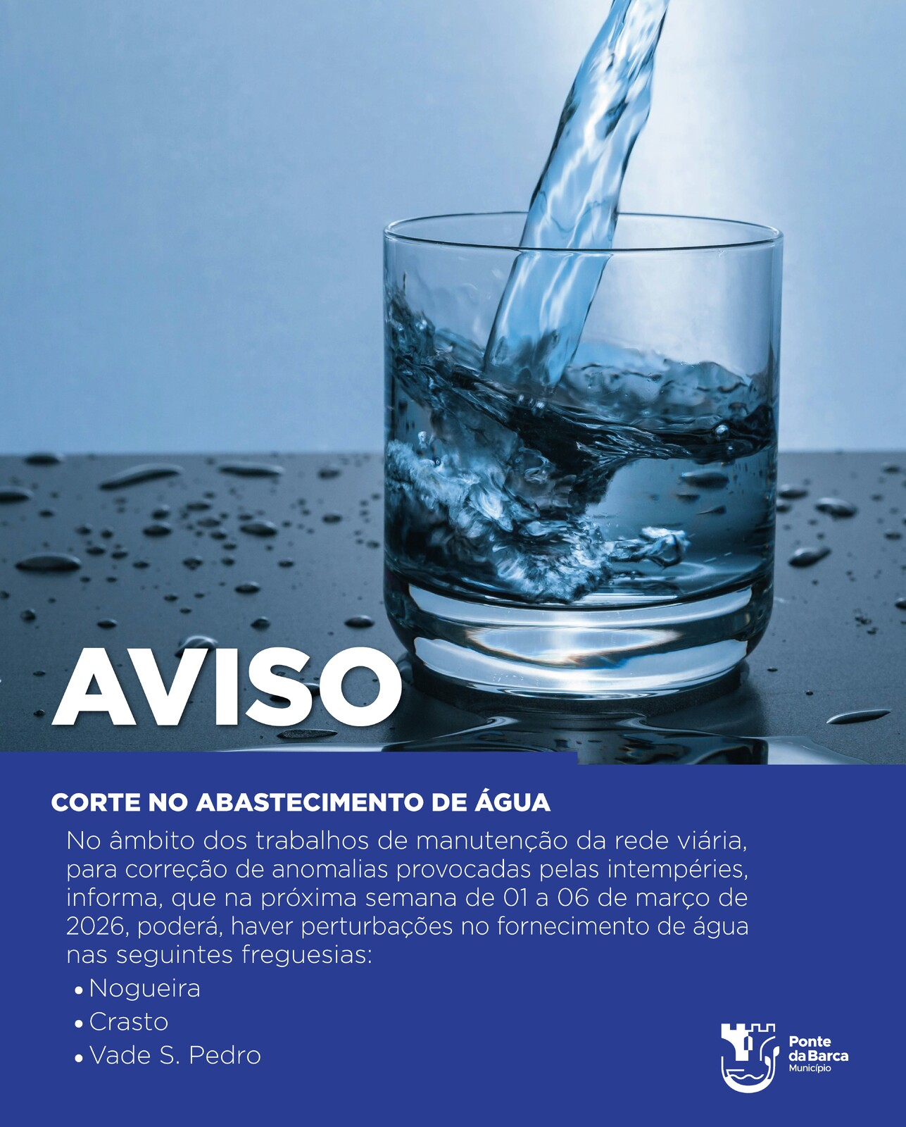 - Aviso - Corte no Abastecimento de Água
