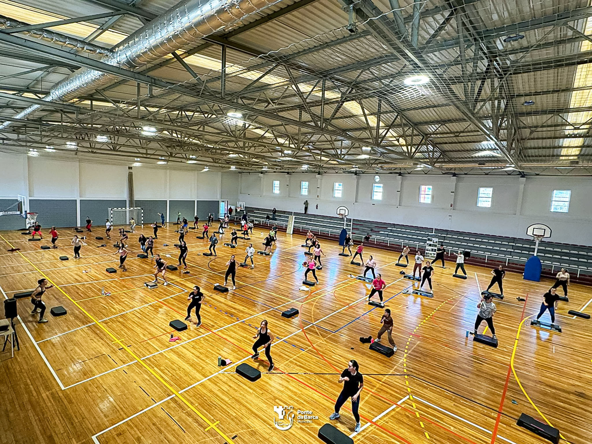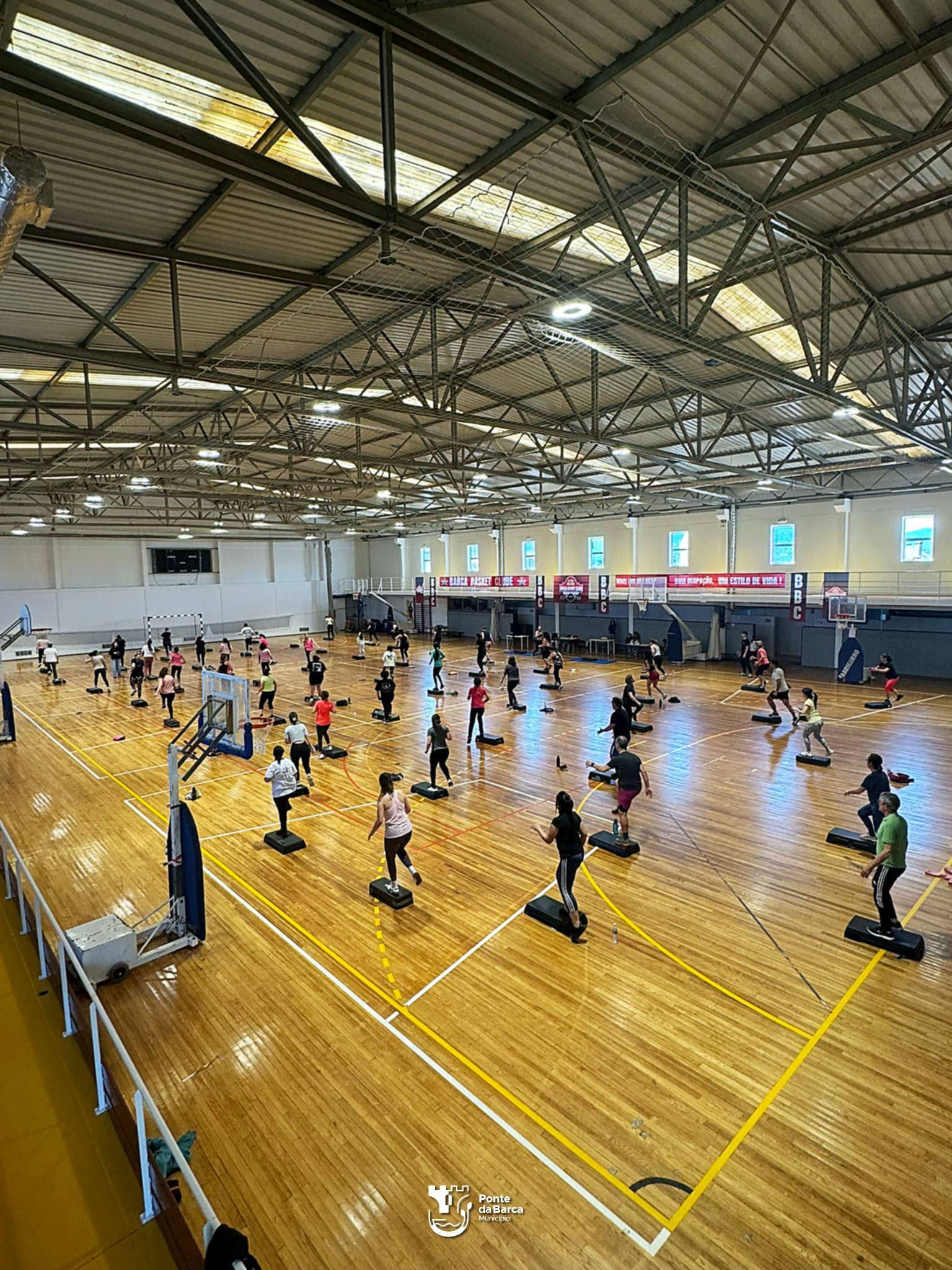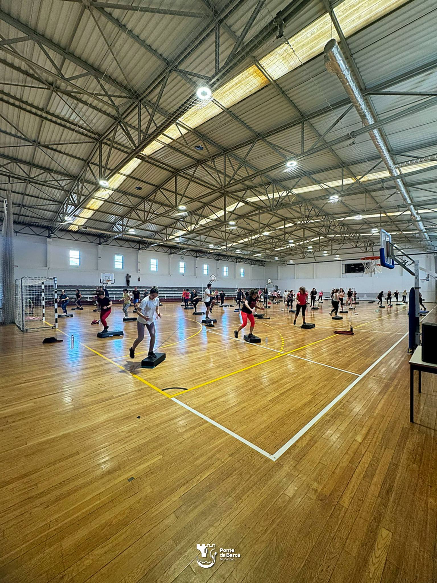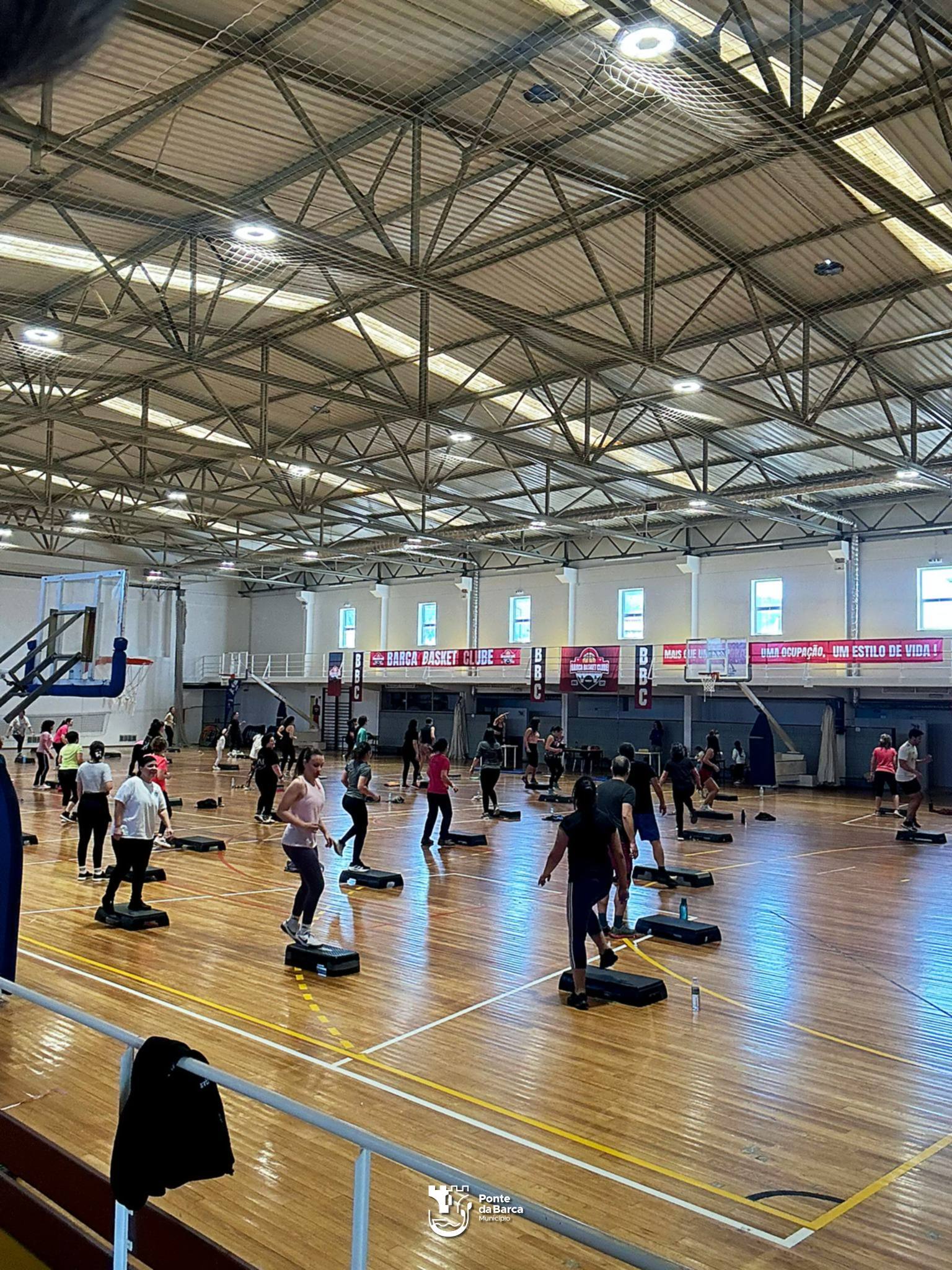 O Pavilhão Municipal de Ponte da Barca encheu-se, ontem, de movimento e entusiasmo com uma aula de Step promovida pelo Município no âmbito do Dia Internacional da Mulher. Os professores Susana Leal e João Leal guiaram a sessão, que contou com uma participação animada e diversificada, reunindo pessoas de todas as idades da comunidade.