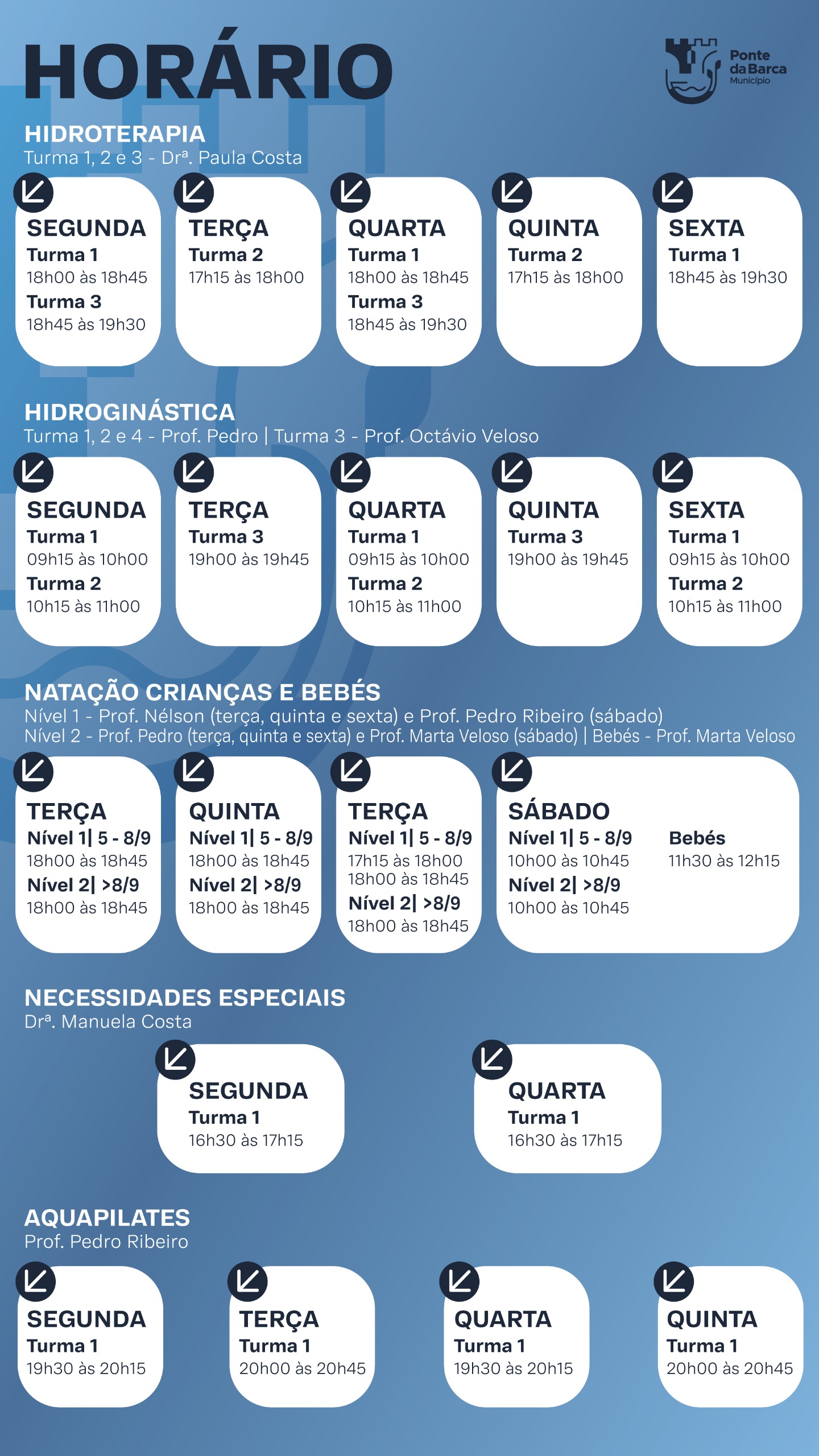 Consulte abaixo os horários e as taxas do Complexo de Piscinas Municipais de Ponte da Barca