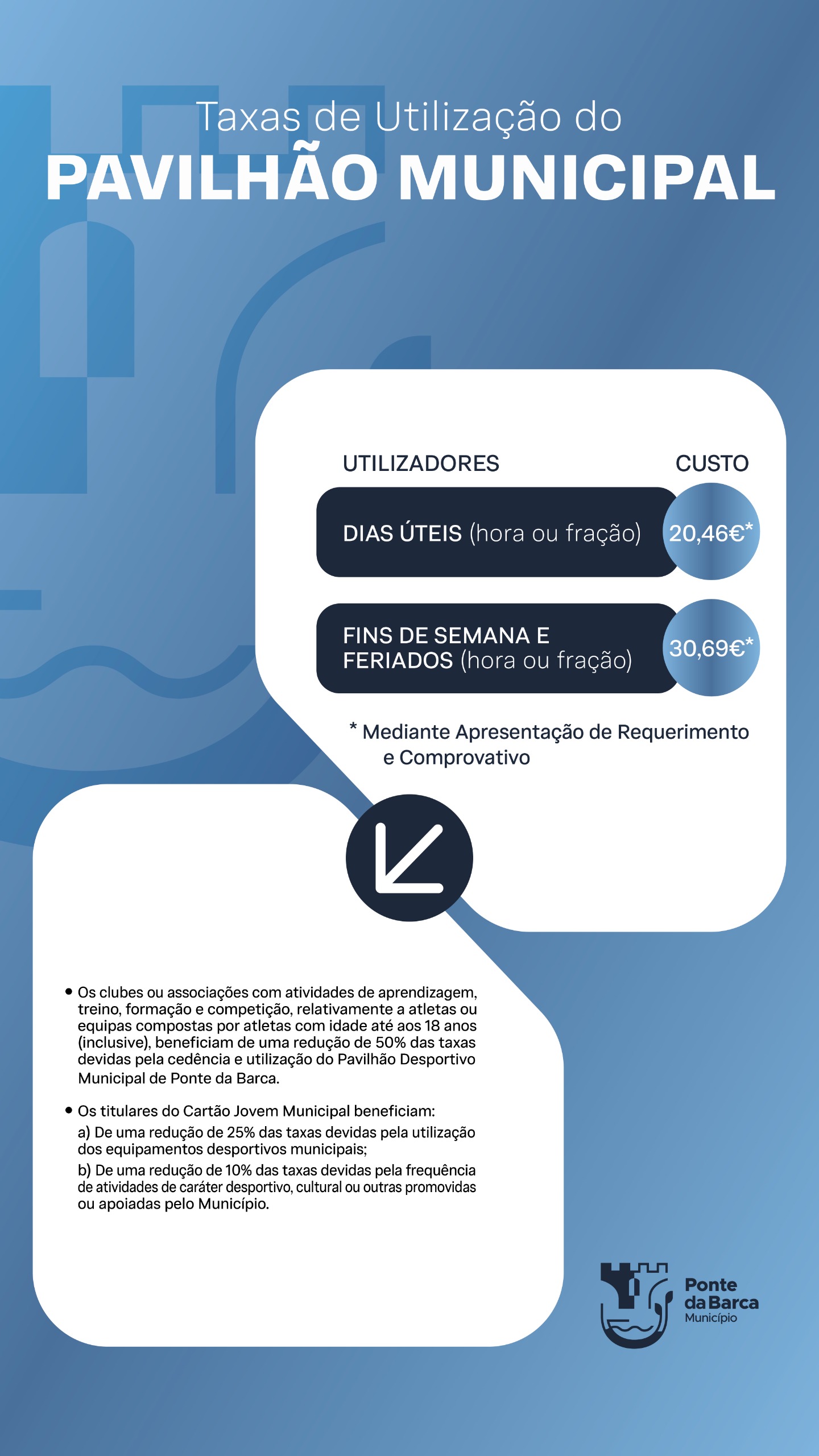 Consulte abaixo as taxas de Utilização do Pavilhão Municipal de Ponte da Barca